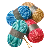 Polyacryl, multicolor, Lauflänge ca. 1200 m, Nadelstärke ca. 3,5 – 4,5, versch. Farben 1 kg = 21.23 – 17.48