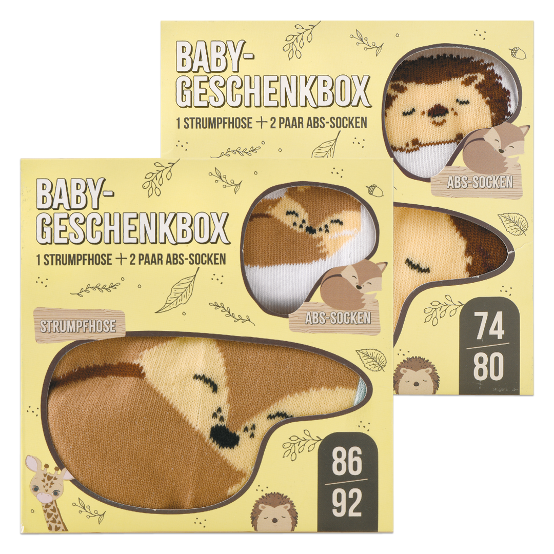 bestehend aus Strumpfhose und 2 x ABS Socken Baumwolle, Polyester und Elasthan, Größen 62/68 – 86/92, versch. Designs/Farben