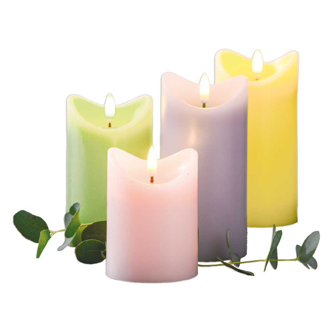 mit realistisch flackernder Flamme, versch. Frühlingsfarben, 2 x AAA Batterien (nicht enthalten) • ca. 7,5 x 10 cm = 3.49 • ca. 7,5 x 12,5 cm = 3.99 • ca. 7,5 x 15 cm = 4.49