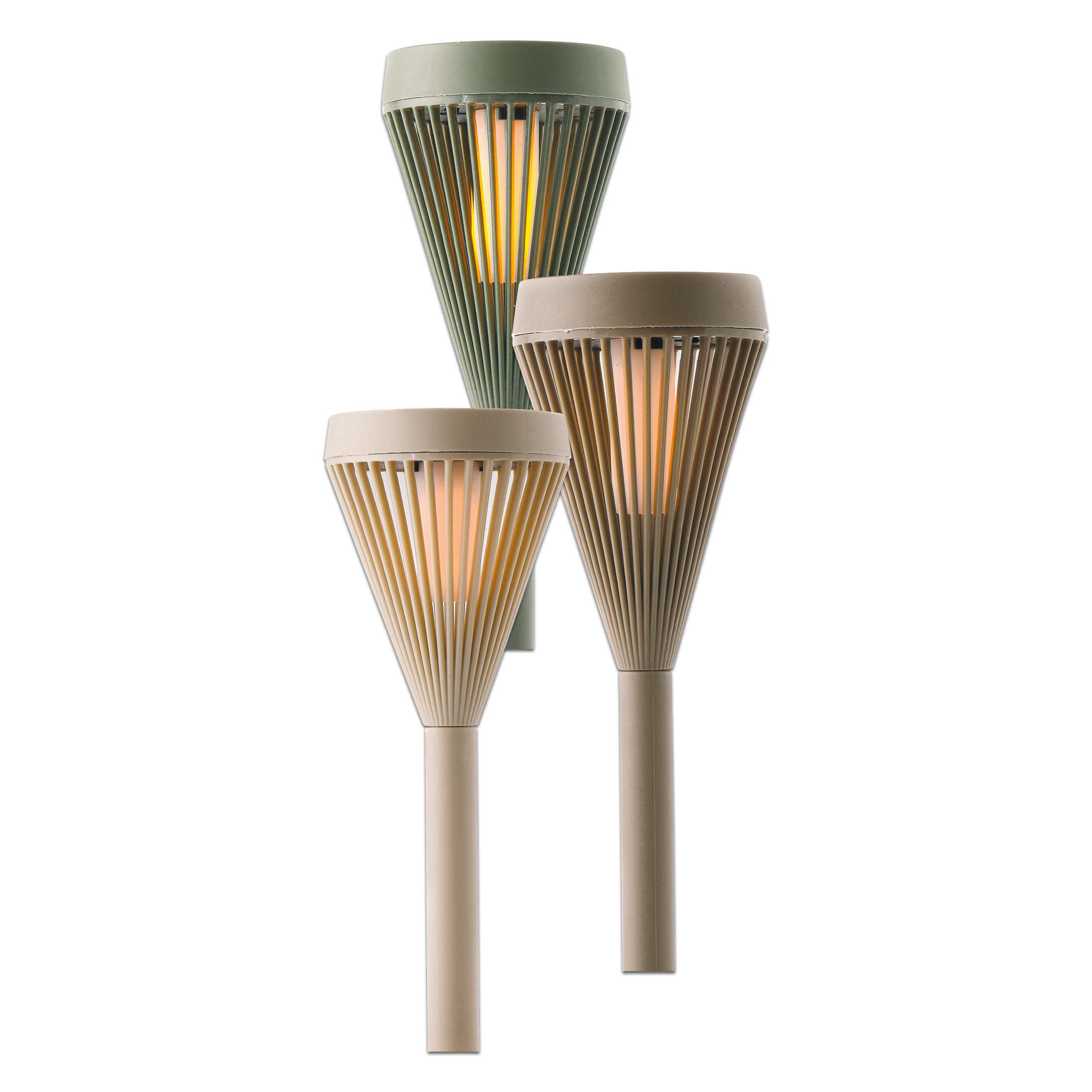 je 1 warm-weiße LED, ca. 7,5 x 10/12,5/15 cm (ø x H), für den Außenbereich, versch. Farben