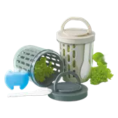 aus Kunststoff, mit Löffel und herausnehmbarem Abtropfsieb, kleiner Kühlakku im Deckel integrierbar, Inhalt ca. 620 ml, versch. Farben