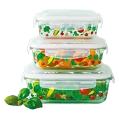 Geschirr: z. B. Dose rund 1,5 Liter oder eckig 1,3 Liter, versch. Farben Deckel: ø ca. 25 cm
