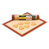 ca. 30 x 40 cm, beidseitig wieder- verwendbar, dient auch als Arbeitsfläche (kein Mehl nötig), leicht zu reinigen, hitzebeständig bis 260 °C