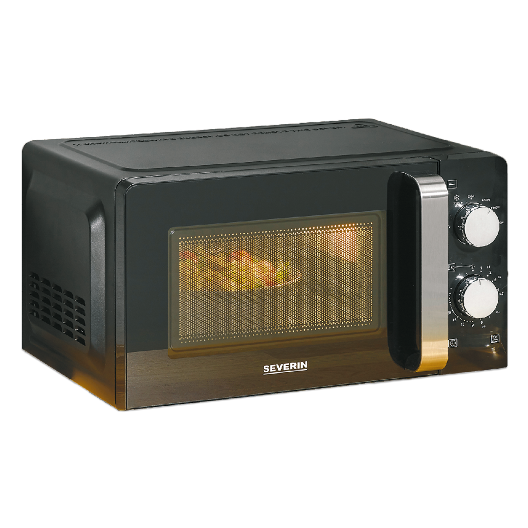 kompaktes Design mit 17 Litern Füll- volumen, 700 W, 6 Leistungsstufen und praktischer Auftau-Funktion, 30 Minuten Timer mit Endsignal, hitze- beständiger und lackierter Innenraum, mühelose Reinigung, Handgriff und Drehregler mit Chrom- Elementen, ca. 44,5 x 36 x 24 cm
