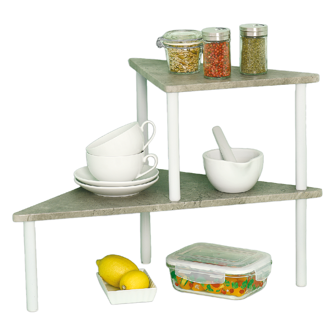 FSC®-zertifizierte Faserplatte, 3D-Dekorfolie Beton, Gestell aus Metall, Farbe Weiß, zur Vergrößerung der Ablageflächen in der Küche, ca. B 53 x H 38 x T 38 cm