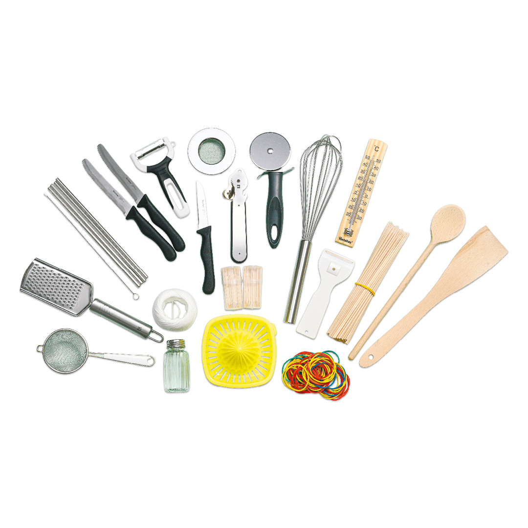 versch. Ausführungen, z. B. Sieb, Schneebesen, Zitruspresse, Kochlöffel, Gummiringe, Sparschäler u.v.m.
