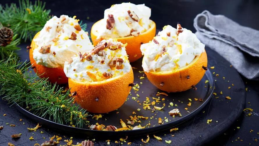 - Die Orangencreme auf die leeren Orangenhälften verteilen und anschließend in den Gefrierschrank stellen, bis sie gefroren sind.