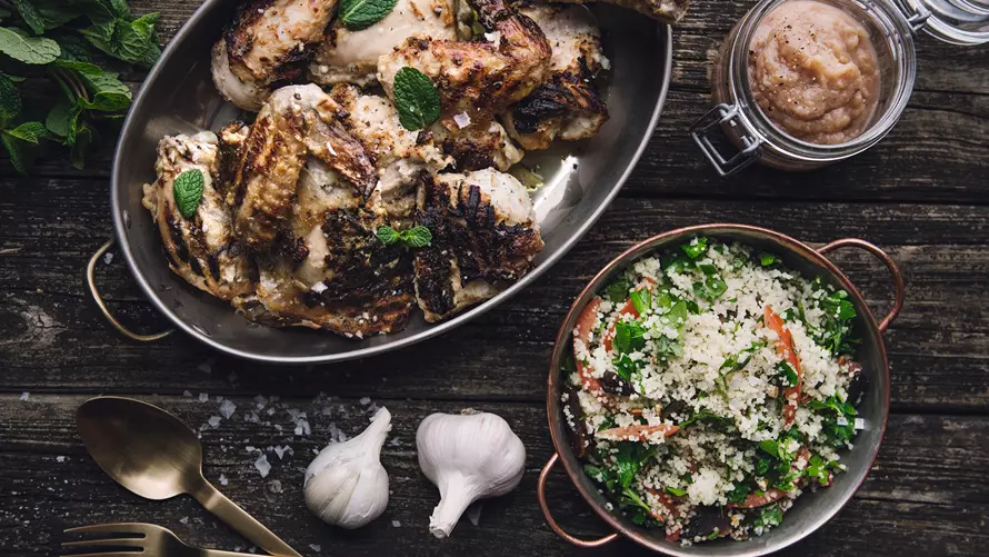 - Das Hähnchenfleisch mit der selbstgemachten Joghurt-Marinade einreiben und über Nacht (mind. 10 Stunden) im Kühlschrank marinieren lassen. Das Hähnchen 30 Minuten vor dem Grillen aus dem Kühlschrank nehmen.