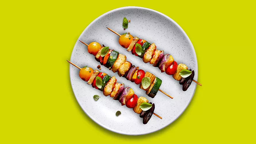 - Die Spieße am Rand des Grills von jeder Seite ca. 8 Minuten grillen.
