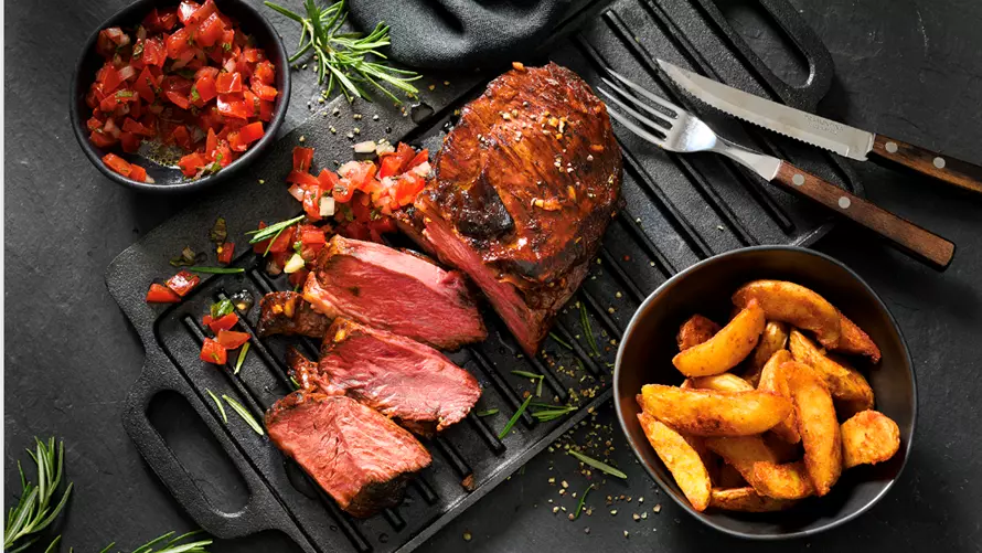 - Grill vorheizen. Den Braten über indirekter Hitze grillen. Garen Sie den Braten bis die Innentemperatur des Bratens mindestens 63 Grad Celsius beträgt (zum Messen ein BBQ Thermometer verwenden). Das Chuck Roast regelmäßig mit der beiseite gestellten Marinade bestreichen.
