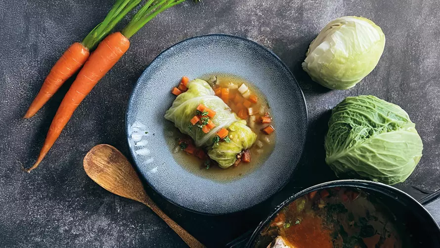 - Kohlrouladen zugeben und etwa 30 Minuten schmoren