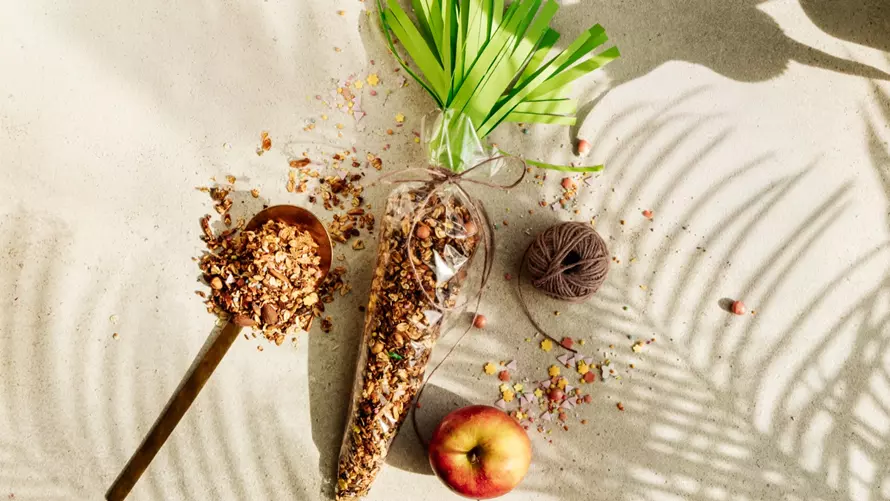 - Müsli abkühlen lassen und anschließend die bunten Streusel unterheben