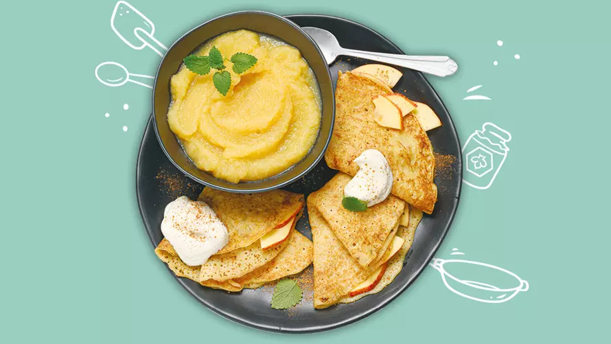 - Eine beschichtete Pfanne erhitzen (mittlere Hitze). Etwas Küchenpapier mit Öl tränken und die heiße Pfanne damit ausreiben. Teig in der Pfanne gleichmäßig verteilen, so dass ein schöner runder Pfannkuchen entsteht. Wenn die Unterseite goldgelb ist, den Pfannkuchen wenden.