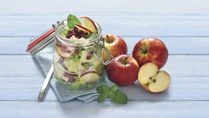 - Den Salat waschen und schneiden. Die Äpfel waschen, halbieren und in dünne Scheiben schneiden. Äpfel, Salat und Walnüsse in Tellern oder einer Schale anrichten.