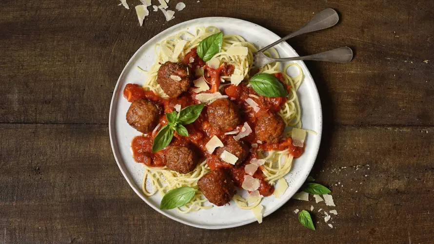 - Die Spaghetti auf die Teller verteilen. Die Sauce mit Salz und Cayennepfeffer abschmecken und über die Spaghetti geben. Mit Basilikumblättern und Parmesan bestreut servieren.