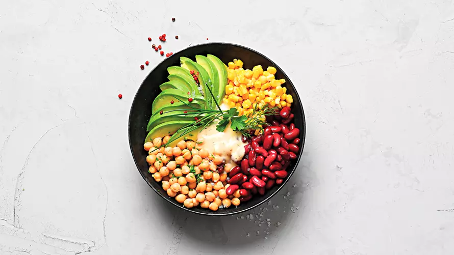 - Lass den Mais, die Kichererbsen und die Kidneybohnen abtropfen und spüle sie gegebenenfalls ab.